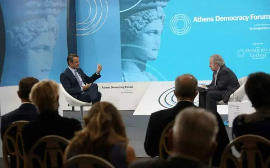 Στην ελληνογαλλική αμυντική συμφωνία, στην Τουρκία, αλλά και στο μεταναστευτικό, αναφέρθηκε ο πρωθυπουργός Κυριάκος Μητσοτάκης, κατά τη διάρκεια συζήτησης με τον δημοσιογράφο των New York Times, Στίβεν Ερλάνγκερ, στο πλαίσιο των εργασιών του Συνεδρίου «Athens Democracy Forum».
