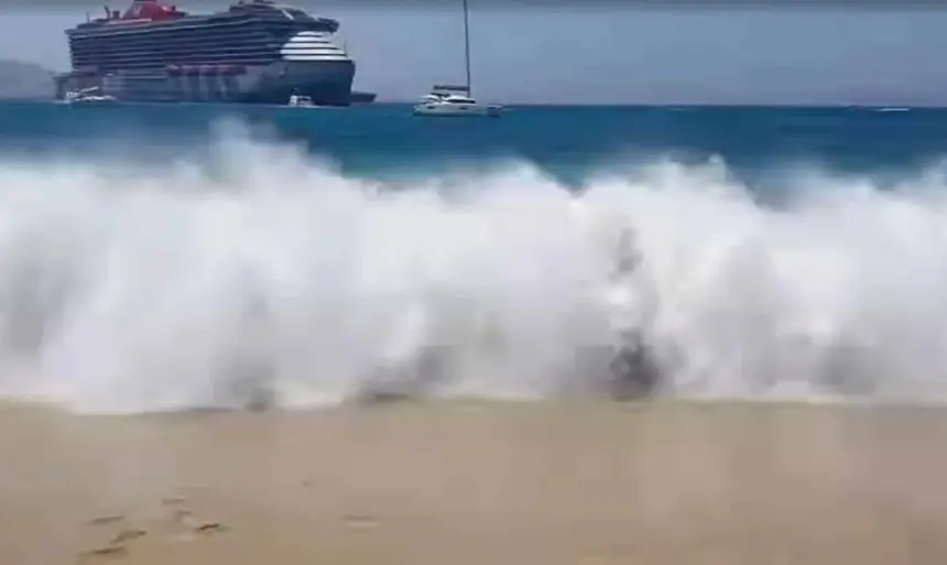 Χαμός επικράτησε στην παραλία του Αγίου Στεφάνου, στη Μύκονο το μεσημέρι του Σαββάτου, όταν πλοίο της γραμμής σήκωσε μεγάλα κύματα. Ως αποτέλεσμα, παρασύρθηκαν και τραυματίστηκαν δύο λουόμενοι.