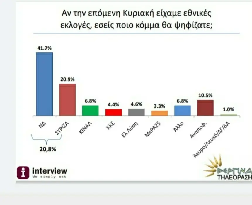 ΣΤΟ 20,8% Η ΔΙΑΦΟΡΑ ΜΕ ΣΥΡΙΖΑ