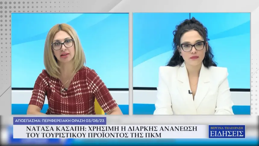 Τα οφέλη της διαρκούς ανανέωσης του τουριστικού προϊόντος της Περιφέρειας Κεντρικής Μακεδονίας επισήμανε μιλώντας στη Βεργίνα Τηλεόραση η υποψήφια Περιφερειακή Σύμβουλος Κεντρικής Μακεδονίας με την παράταξη «Αλληλεγγύη» Νατάσα Κασάπη.