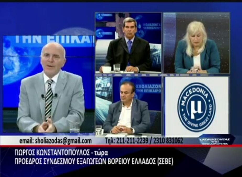 Το σήμα του Συνδέσμου Εξαγωγέων Βορείου Ελλάδος για τα μακεδονικά προϊόντα και ο πρόεδρος του Γιώργος Κωνσταντόπουλος, ήταν ένα από τα θέματα της εκπομπής “σχολιάζοντας την επικαιρότητα” με τον Στέργιο Καλόγηρο στη Βεργίνα τηλεόραση .