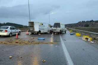 Σύγκρουση τριών οχημάτων στην εξωτερική περιφερειακή – Γέμισε ψωμιά ο δρόμος