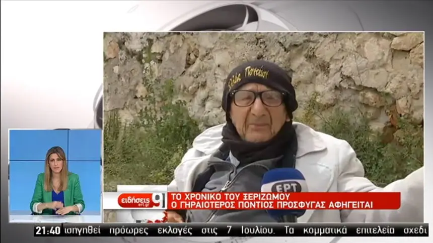 Με ζωντανή τη μνήμη αφηγείται στην κάμερα της ΕΡΤ και το Θωμά Σίδερη το χρονικό του ξεριζωμού.