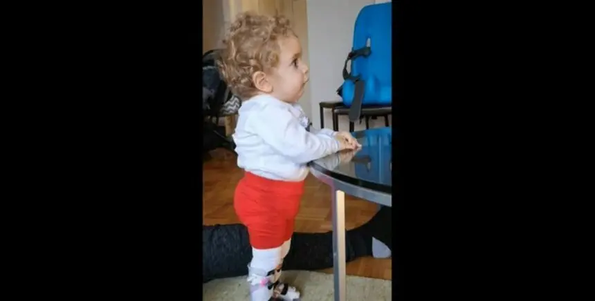Ο μικρός Παναγιώτης Ραφαήλ στέκεται για πρώτη φορά στα πόδια του