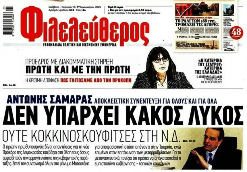 Σαμαράς για Σακελλαροπούλου: Εκτός γραμμής ο πρώην πρωθυπουργός για το μέγιστο θέμα της Προεδρίας της Δημοκρατίας, αξίωμα για το οποίο είχε ακουστεί και το δικό του όνομα. Λέει στον “Φιλελεύθερο”: “Όπως γνωρίζετε, η επιλογή του υποψηφίου Προέδρου είναι προνόμιο του πρωθυπουργού. Χαίρομαι που ξεκαθάρισε το τοπίο. Δεν μπορώ να πω ότι γνωρίζω την κυρία Σακελλαροπούλου. Της εύχομαι, βεβαίως, καλή επιτυχία. Λόγω προγραμματισμένου από καιρό ταξιδιού στις ΗΠΑ δεν θα βρίσκομαι στη Βουλή την ημέρα της ψηφοφορίας. Θα στείλω ωστόσο σχετική επιστολή, στην οποία θα αναφέρω ότι αν ήμουν παρών θα υπερψήφιζα την πρόταση του κόμματός μου”.