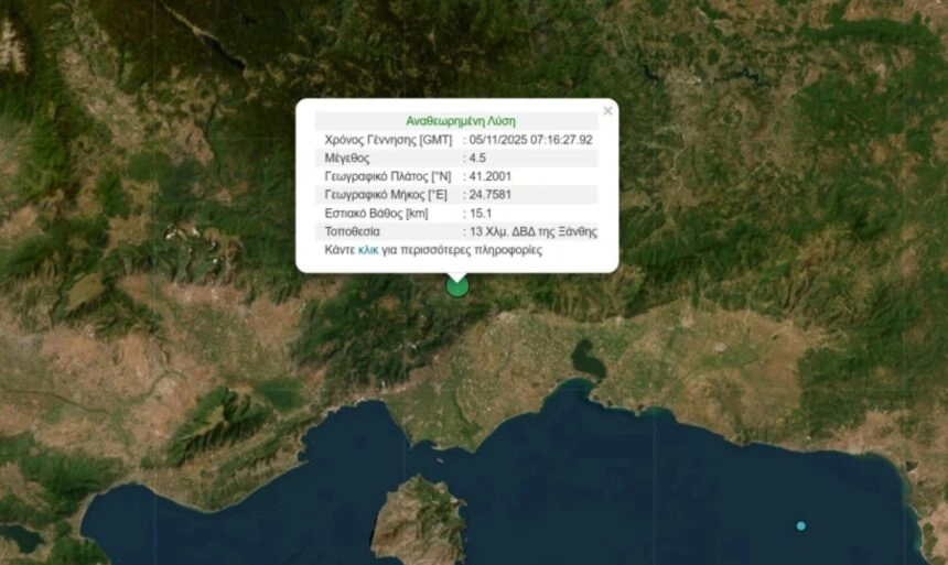 Σεισμός 4,5 Ρίχτερ «ταρακούνησε» την Ξάνθη
