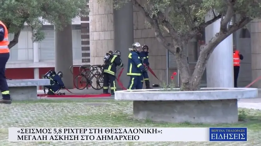 Η σειρήνα χτυπά ασταμάτητα, καθώς έχει ξεσπάσει φωτιά. Ένα μέρος του κτηρίου καταρρέει και άτομα εγκλωβίζονται και τραυματίζονται. Όλα αυτά μετά τον μεγάλο σεισμό 5,8 Ρίχτερ που σημειώθηκε στην Θεσσαλονίκη το πρωί της Τρίτης. Φυσικά δεν πρόκειται για πραγματικό σενάριο αλλά για άσκηση που σημειώθηκε στο κτίριο που στεγάζεται το δημαρχείο Θεσσαλονίκης.