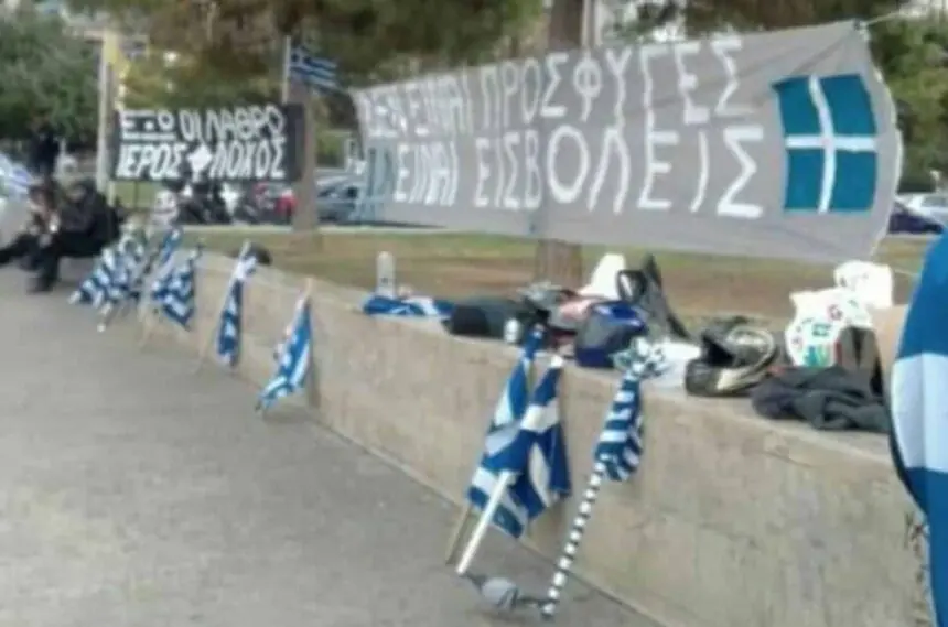 Συγκέντρωση διαμαρτυρίας ενάντια στην έλευση προσφύγων και μεταναστών στη Θεσσαλονίκη. Το ραντεβού μπορει να ήταν για 16.00, στον Λευκό Πύργο, ωστόσο άτομα ήδη έχουν αρχίσει να συγκεντρώνονται στο σημείο τοποθετώντας πανό και ελληνικές σημαίες.
