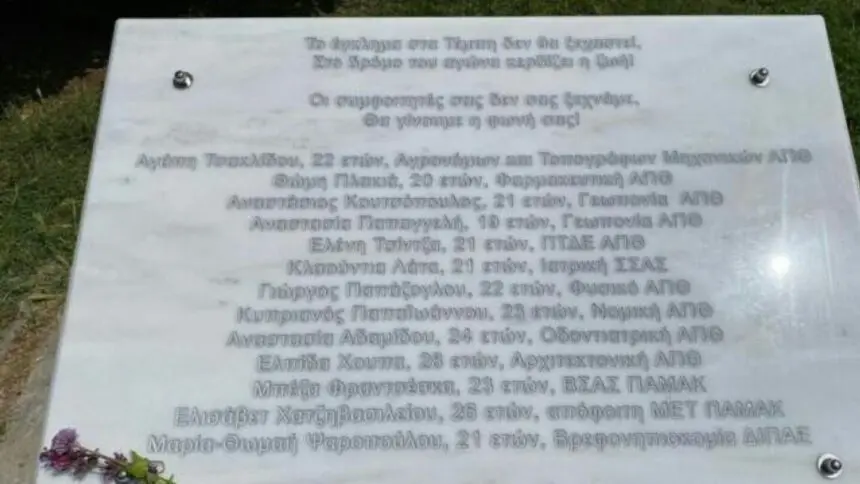 Συγκλονίζει το μνημείο στο ΑΠΘ για τους φοιτητές που σκοτώθηκαν στα Τέμπη