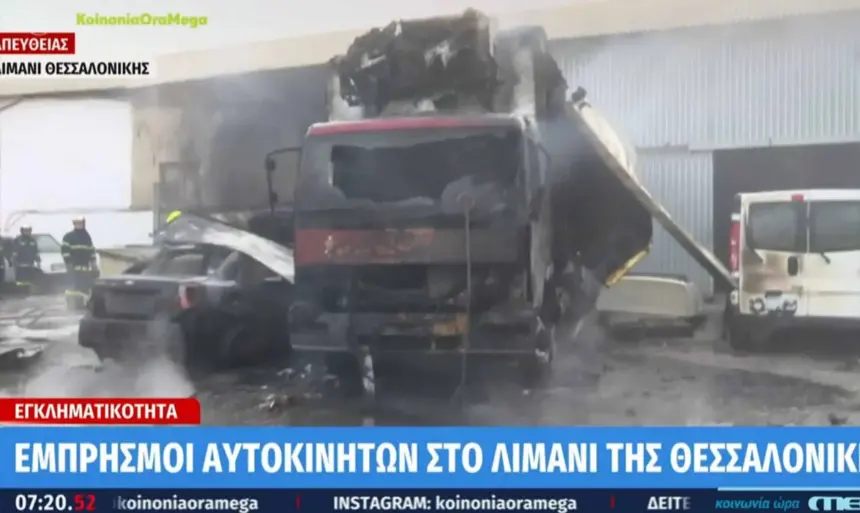 Συναγερμός στη Θεσσαλονίκη – Εμπρησμοί οχημάτων σε πάρκινγκ κοντά στο λιμάνι