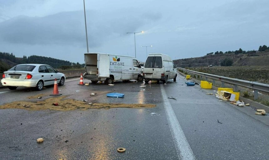 Δύο βαν και ένα ασθενοφόρο ιδιωτικής εταιρείας συγκρούστηκαν υπό αδιευκρίνιστες συνθήκες στο ρεύμα προς ανατολικά, στο ύψος των Νταμαριών της Ευκαρπίας, χωρίς να υπάρχουν μέχρι στιγμής αναφορές για τραυματισμούς. Ωστόσο, ο δρόμος έχει γεμίσει ψωμιά και αρτοσκευάσματα που μετέφερε ένα από τα εμπλεκόμενα βαν.