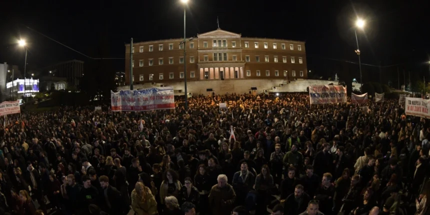 Με υπόκρουση τραγούδια γραμμένα για την τραγωδία στα Τέμπη και συνθήματα συμπαράστασης στους συγγενείς τους και στον αγώνα τους να αποδοθεί δικαιοσύνη, πολλές χιλιάδες κόσμου διαδηλώνει απόψε στην πλατεία Συντάγματος ανταποκρινόμενος στο κάλεσμα των εργατικών συνδικάτων, κλαδικών συλλόγων, εργατικών κέντρων και άλλων ομοσπονδιών.