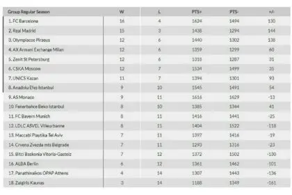 Η βαθμολογία της Euroleague