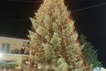Χαλκιδική: Φωταγωγήθηκε το πρώτο χριστουγεννιάτικο δέντρο στον Ταξιάρχη, με 90.000 λαμπιόνια