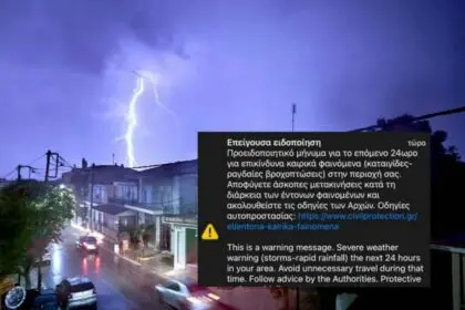 Κακοκαιρία Genesis: Εστάλη μήνυμα 112 σε Θεσσαλονίκη, Θεσσαλία και ΚοζάνηΣτο μήνυμα αναφέρεται ότι οι πολίτες…