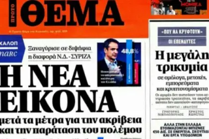 Δημοσκόπηση Marc Μαΐου για το Πρώτο Θέμα με διψήφια διαφορά ΝΔ – ΣΥΡΙΖΑ