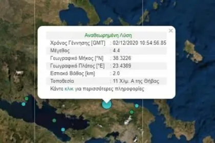 4,5 Ρίχτερ κοντά στη Θήβα