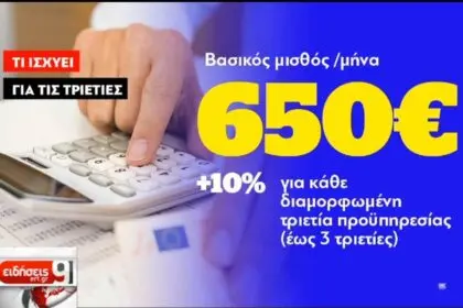 Οι αμοιβές όσων διατηρούν το επίδομα προϋπηρεσίας (τριετίες), μετά και την αύξηση από 1ης Φεβρουαρίου…