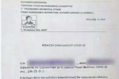 Εμβολιασμός Ελλάδα: Αυτό είναι το πιστοποιητικό – Ποια στοιχεία θα αναγράφονται
