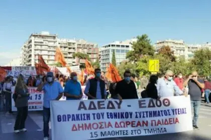 Οι διαδηλωτές αντιδρούν για την κοινωνική πολιτική της κυβέρνησης σε νευραλγικούς τομείς όπως η υγεία…