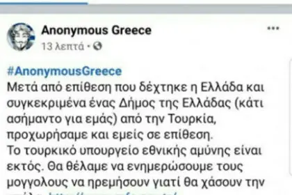 Οι Anonymous Greece έδωσαν τη δική τους απάντηση στους Τούρκους χάκερ που «έριξαν» τη σελίδα…