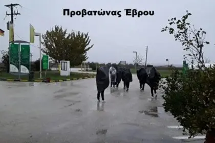 Ούτε το χιόνι ούτε η βροχή σταματούν τους λαθρομετανάστες (Προβατώνας Σουφλίου σήμερα πρωί)