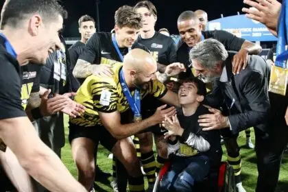 ΑΕΚ: Οι παίκτες της γιόρτασαν το Κύπελλο με μικρό φίλο του ΠΑΟΚ με αναπηρία
