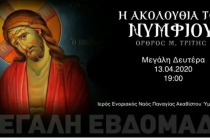 Δείτε ζωντανά την προηγιασμένη θεία λειτουργία της Μ. Τρίτης από τον ιερό ναό του Ακάθιστου…