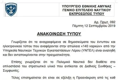 Σε διάψευση δημοσιεύματος για την απώλεια στρατιωτικού υλικού στη Λέρο, σύμφωνα με το οποίο από…