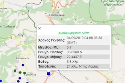 Σεισμική δόνηση «ταρακούνησε» τη Λαμία