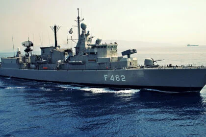 Η φρεγάτα του Πολεμικού Ναυτικού HS Κουντουριώτης (F-462) βρίσκεται σε επιφυλακή στα ανοιχτά των ακτών…