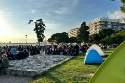Θεσσαλονίκη: Γέμισε ο Λευκός Πύργος με σκηνές για ολονύκτια διαμαρτυρία υπέρ της Παλαιστίνης
