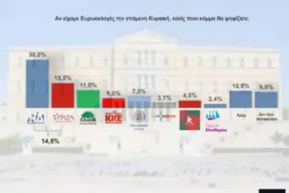 Σχεδόν διπλάσια είναι η διαφορά της Νέας Δημοκρατίας από τον ΣΥΡΙΖΑ στην πρόθεση ψήφου επί…