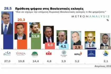 Δημοσκόπηση Metron Analysis: Διαφορά 8,2% της ΝΔ από ΣΥΡΙΖΑ