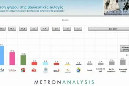 Δημοσκόπηση Metron Analysis Ιανουαρίου 2022: Κρατά τη διαφορά η ΝΔ – Ενίσχυση για ΣΥΡΙΖΑ & ΚΙΝΑΛ