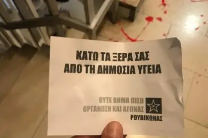 Ομάδα μελών του Ρουβίκωνα έκανε "παρέμβαση" στο πολιτικό γραφείο του Υπ. Υγείας, Βασίλη Κικίλια σημαίνοντας…