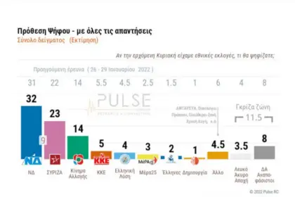 Δημοσκόπηση Pulse Φεβρουαρίου: Αυτή είναι η διαφορά μεταξύ ΝΔ και ΣΥΡΙΖΑ -Τι φοβούνται οι πολίτες για την Ουκρανία