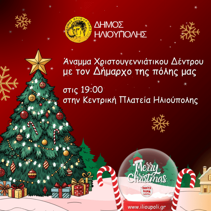 Ας συγκεντρωθούμε όλοι μαζί στην Κεντρική πλατεία της πόλης μας αυτή την Κυριακή 14 Δεκεμβρίου στις 19:00 για να φωταγωγήσουμε το δέντρο μας και να καλωσορίσουμε μία περίοδο στην Ηλιούπολη γεμάτη δρώμενα, εκδηλώσεις, το χριστουγεννιάτικο χωριό μας, δημιουργικές δραστηριότητες για μικρούς και μεγάλους.