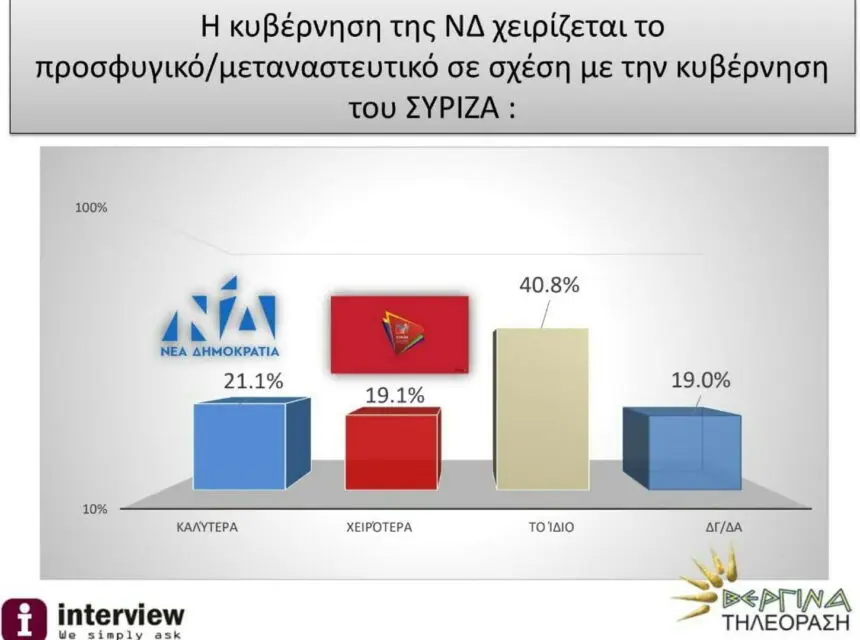 Δημοσκόπηση της Βεργίνα τηλεόραση : Η διαχείριση του προσφυγικού και η σύγκριση υπουργών ΝΔ και ΣΥΡΙΖΑ
