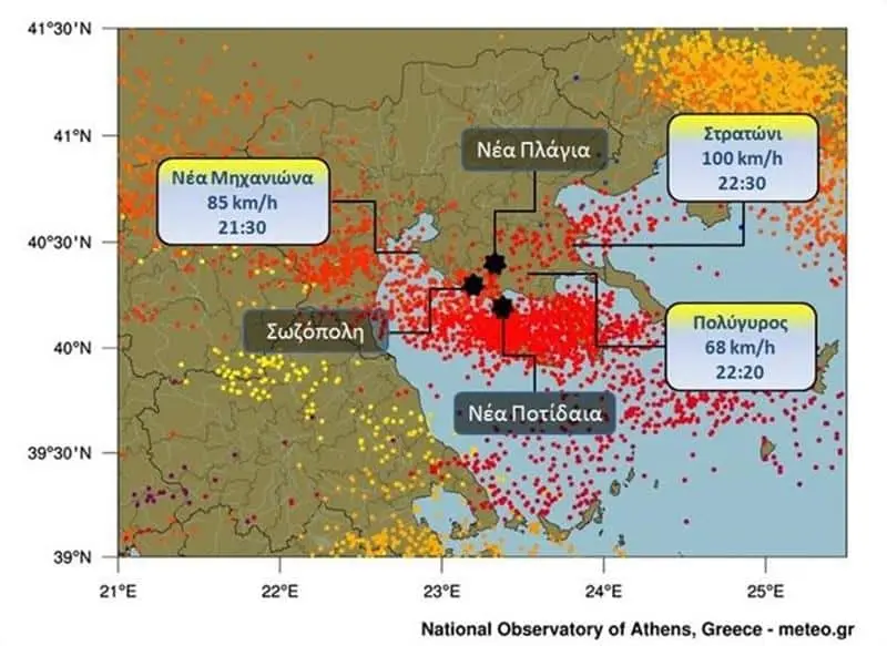 Η δορυφορική “ακτινογραφία” της υπερκυτταρρικής καταιγίδας στη Χαλκιδική
