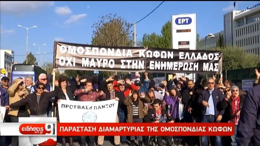 Παράσταση διαμαρτυρίας στην ΕΡΤ από την Ομοσπονδία Κωφών Ελλάδος (video)