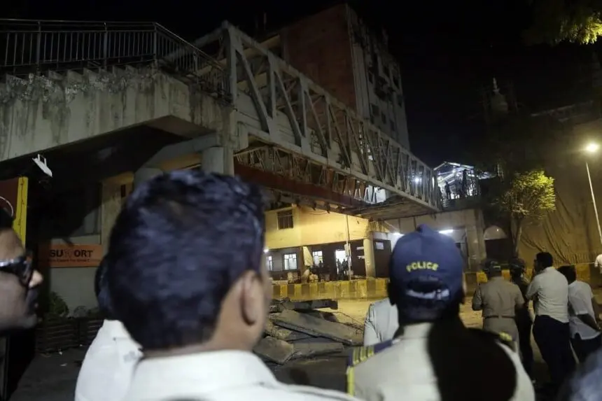 Πέντε άνθρωποι σκοτώθηκαν και 36 τραυματίστηκαν, όταν κατέρρευσε τμήμα μιας πεζογέφυρας, αργά σήμερα το απόγευμα, σε ώρα αιχμής στην οικονομική πρωτεύουσα της Ινδίας, το Μουμπάι, ανακοίνωσε η αστυνομία. #JustIn |…