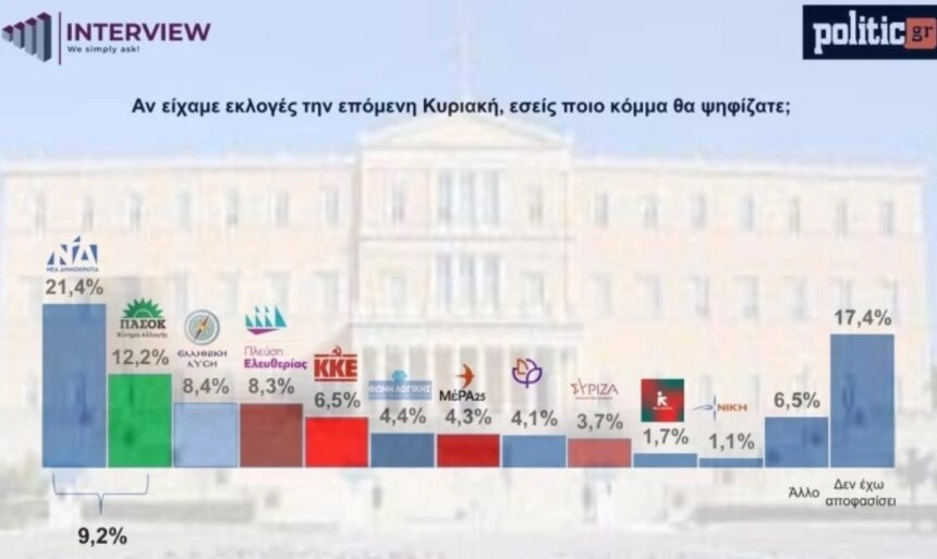Δημοσκόπηση Interview: Μπροστά η ΝΔ με 25,9% – Σύμπλευση με Τσίπρα θέλουν οι μισοί ψηφοφόροι ΣΥΡΙΖΑ