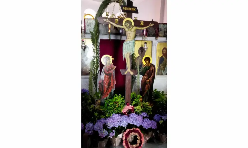 «Σήμερον κρεμάται επί ξύλου ο εν ύδασι την γην κρεμάσας» ψάλλει ο ιερέας την ώρα που περιφέρει τον εσταυρωμένο Ιησού στον ναό για την αναπαράσταση της σταύρωσης.