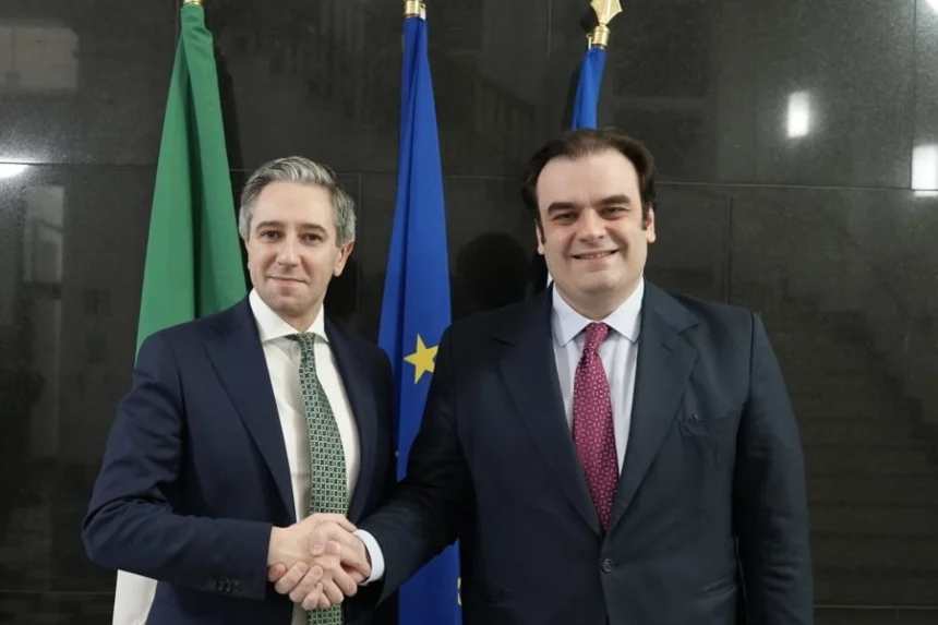 Ο Υπουργός Εθνικής Οικονομίας και Οικονομικών Κυριάκος Πιερρακάκης συναντήθηκε σήμερα στο Δουβλίνο με τον Αντιπρόεδρο της Ιρλανδικής Κυβέρνησης και Υπουργό Οικονομικών Simon Harris. Κατά τη διάρκεια των συνομιλιών επιβεβαιώθηκε το άριστο επίπεδο των διμερών σχέσεων Ελλάδας–Ιρλανδίας και η κοινή δέσμευση για στενή συνεργασία σε κρίσιμες ευρωπαϊκές προτεραιότητες.