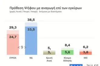 Αυτοδυναμία της ΝΔ και προβάδισμα 9 μονάδων στην ΝΔ, δίνει νέα δημοσκόπηση της Pulse για τον ΣΚΑΪ, η…