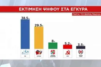 Προβάδισμα της Νέας Δημοκρατίας από 7,8 μονάδες έως 8,2 μονάδες έναντι του ΣΥΡΙΖΑ καταγράφει η νέα δημοσκόπηση της…