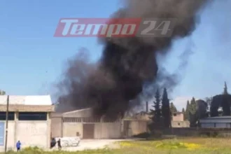Φωτιά ξέσπασε σε χώρο εργοστασίου επί της Ε.Ο. Πατρών – Πύργου, στο Γομοστό Αχαΐας. Η φωτιά καίει πλαστικά…