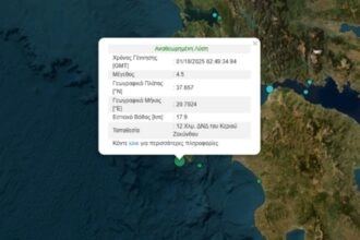 Η δόνηση καταγράφηκε στις 05:49 και σύμφωνα με την αναθεωρημένη λύση του Γεωδυναμικού Ινστιτούτου είχε μέγεθος 4,5 βαθμών της…