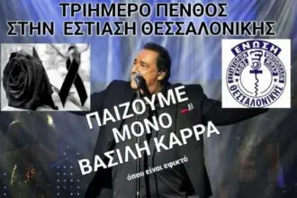 Τριήμερο πένθος στην εστίαση της Θεσσαλονίκης – Θα παίζουν μόνο τραγούδια του Βασίλη ΚαρράΣυγκεκριμένα, η Ένωση Εστιατόρων Ψητοπωλών…